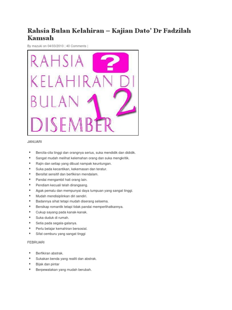 Rahsia Bulan Kelahiran Anda. 43 comments esempoi May 21 2014 101700 AM banyak rahsia pada tarikh lahir kita Reply Delete Replies. Pandai mencungkil dan mencari rahsia.