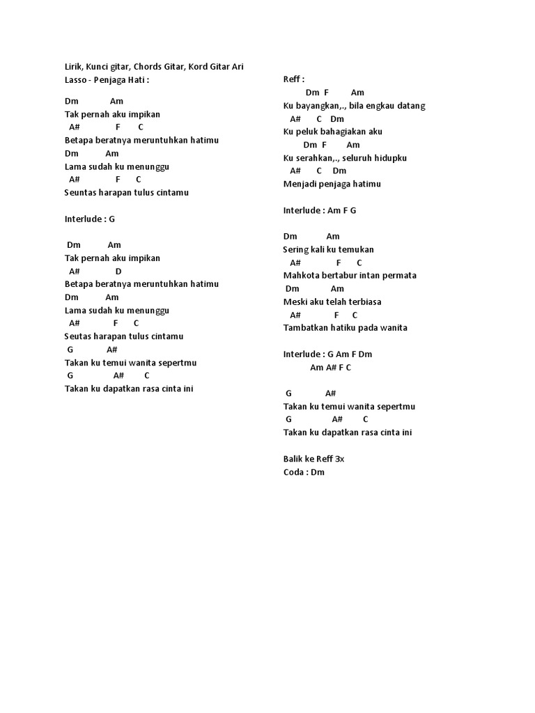 Takan Ku Temui Wanita Sepertimu Tags. Selama Jantungku Masih Berdetak Chord Kunci Gitar dan Lirik Penjaga Hati - Ari Lasso. Dm G C engkaulah cintaku.