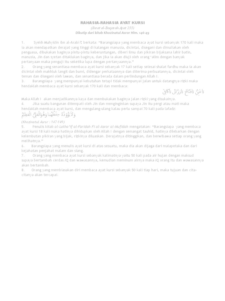 Hadis dari Abi Hurairah Nabi Muhammad SAW bersabda. Bahkn disana banyak yang kemana mana harus jalan kaki. Dan percayalah jika memang khasiat Ayat Kursi Untuk Kekayaan Tanpa Tumbal bisa terwujud dengan kesungguhan hati Anda dan diimbangi dengan kerja keras juga tentunya.
